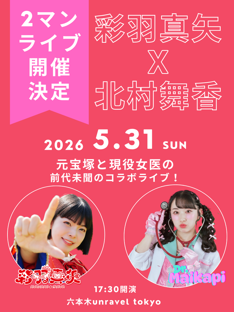 2マンライブ SCHEDULE 2026/05/31(日) 【2マンライブ開催決定!】 元宝塚男役彩羽真矢さんとコラボライブさせていただきます! 🗓️5月31日(日)📍六本木 unravel tokyo⏰開演 17:30🎫 4月20日チケット発売開始予定! 詳細は追ってお知らせします! URLをコピーする 報告する